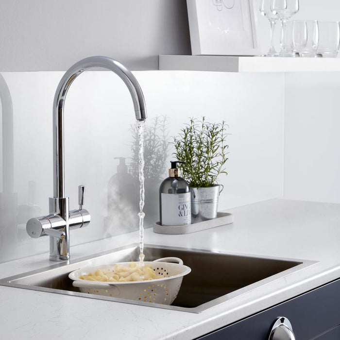 Get near boiling water straight from the tap with this 4-in-1 chrome fixture by Lamona, which comes with the boiler for a complete installation.